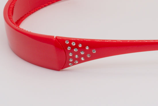 Fall head over heels for our racy Red SqHair Band with her triangle embellishment of 15 sparkling Czech Crystals at both corners. You’ll love her comfortable fit due to the hinged design, rubber tips on the ends of her arms, and 100 small teeth that enable you to flaunt your beautiful hair - right where you want it!